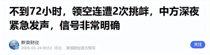 4.《不到72小时,领空连遭2次寻衅,中方半夜紧迫发声HQSports,信号特殊明确》2026-03-24 00:53 | 源流:新浪财经