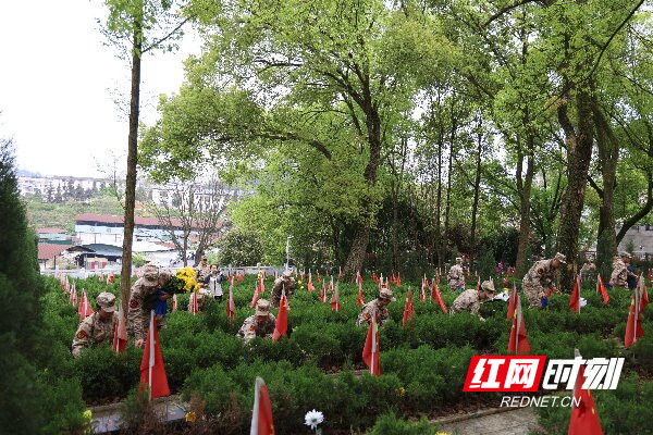 办当事人谈主员与退役士兵们集体祭扫。